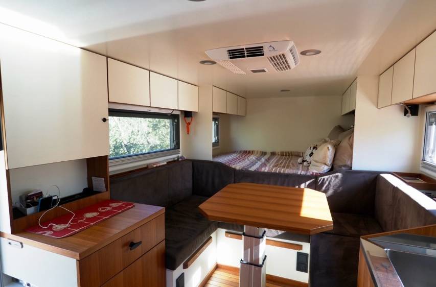 - есть всё необходимое для проживания: кухня, кровати, шкаф, стол, биотуалет;