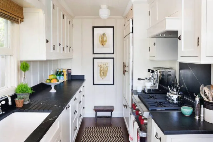 - Двухрядная – гарнитур мебели для кухни ставят вдоль двух противолежащих стен.