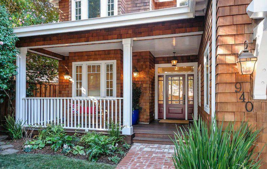 Правильнее учесть веранду еще на этапе проектирования дома, чтобы потом не пришлось ничего колхозить. По моему мнению, идеальное место — на заднем дворе. Обычно там меньше шума от дороги и открывается вид на приусадебный участок.