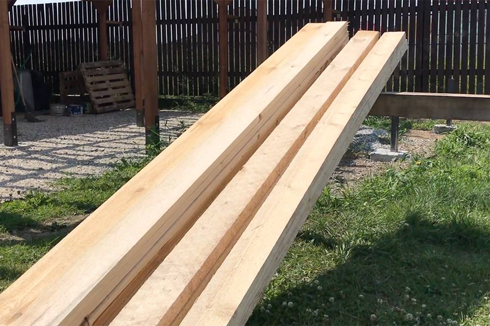 Брус у меня был, на рынке я дополнительно купил для финишного покрытия пола доски 150 × 25 мм — так называемую дюймовку.