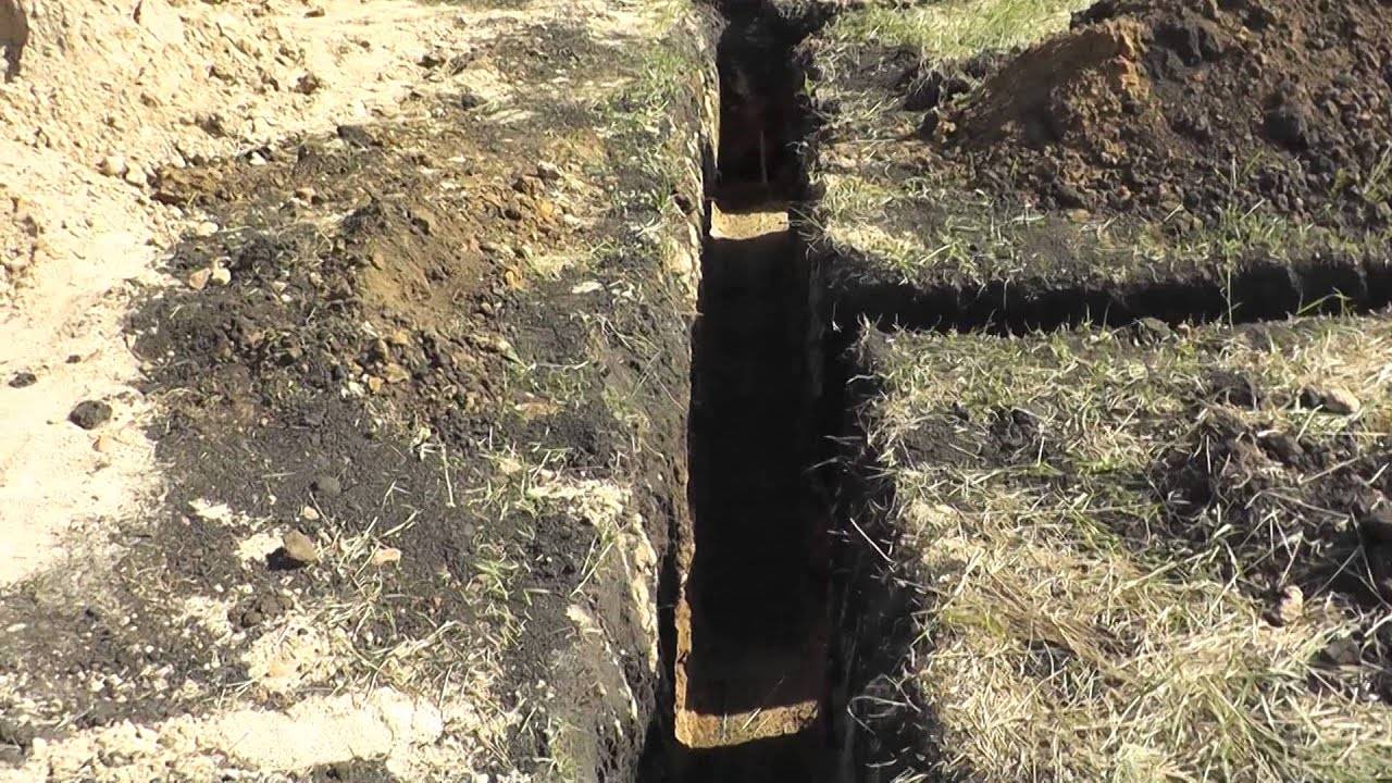 На новом этапе работы по строительству фундамента нужно выкопать траншею по всему периметру будущего дома, углубляясь на полтора метра в землю. Ширина траншеи должна быть больше толщины стен будущей постройки на двадцать сантиметров. Если бетон будет заливаться в основание дома, то место для его заливки огораживается деревянным каркасом или опалубкой, которая сможет придать прямоугольную форму застывающему бетонному раствору после заливки.