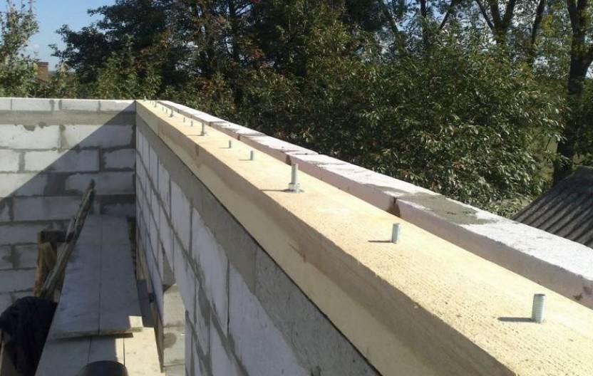 Внимание! Если армированный пояс будет служить опорой для мауэрлата, в него закладывают вертикальные резьбовые шпильки для крепления кровельного основания
