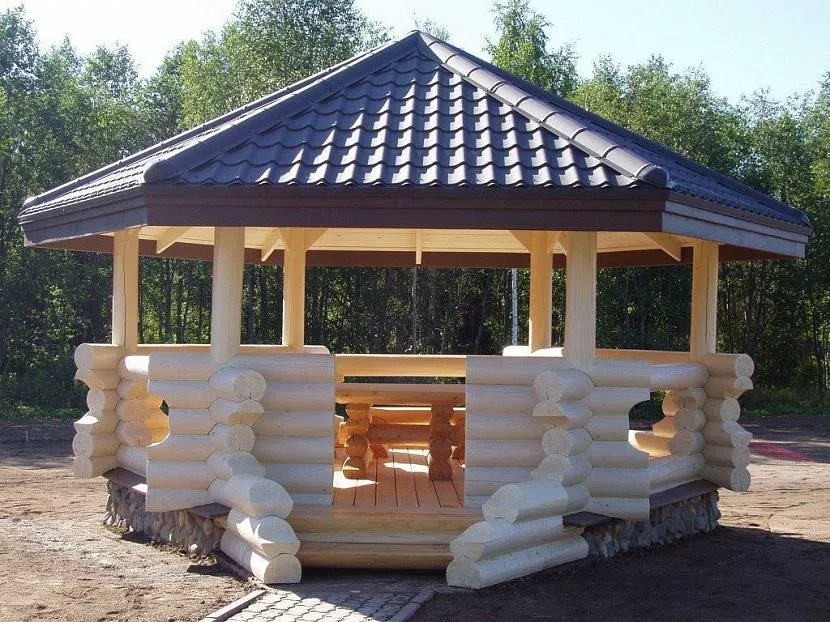 Покрытие беседки из бревна металлочерепицейИсточник cdd.su
