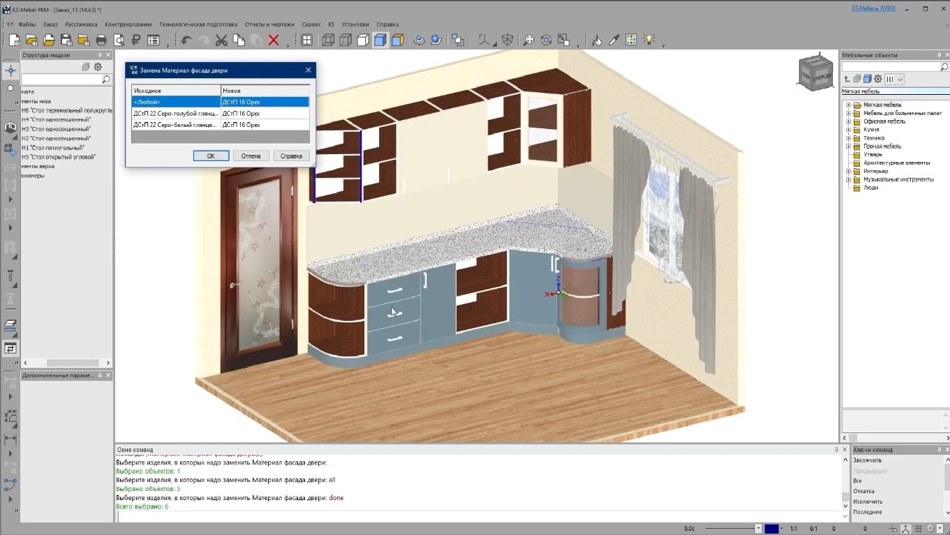 - есть возможность использования определенных фрагментов часто повторяющихся элементов для создания мебельных комплексов;- карты присадок выводятся автоматически, есть ручное редактирование;