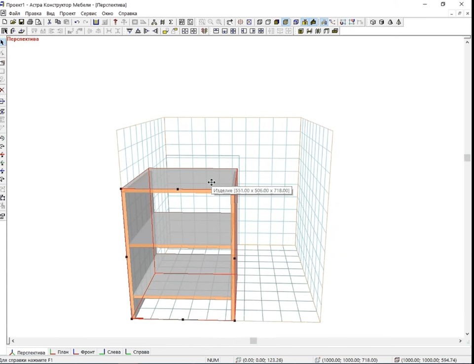 Также в этой системе вы можете редактировать любую деталь и это огромный плюс. Несмотря на то, что Астра Конструктор выполняет практически все действия автоматически, вы можете подкорректировать все: чертеж, форму ручки дверцы, толщину полочки, углы и другое. Не каждая программа позволяет это делать.