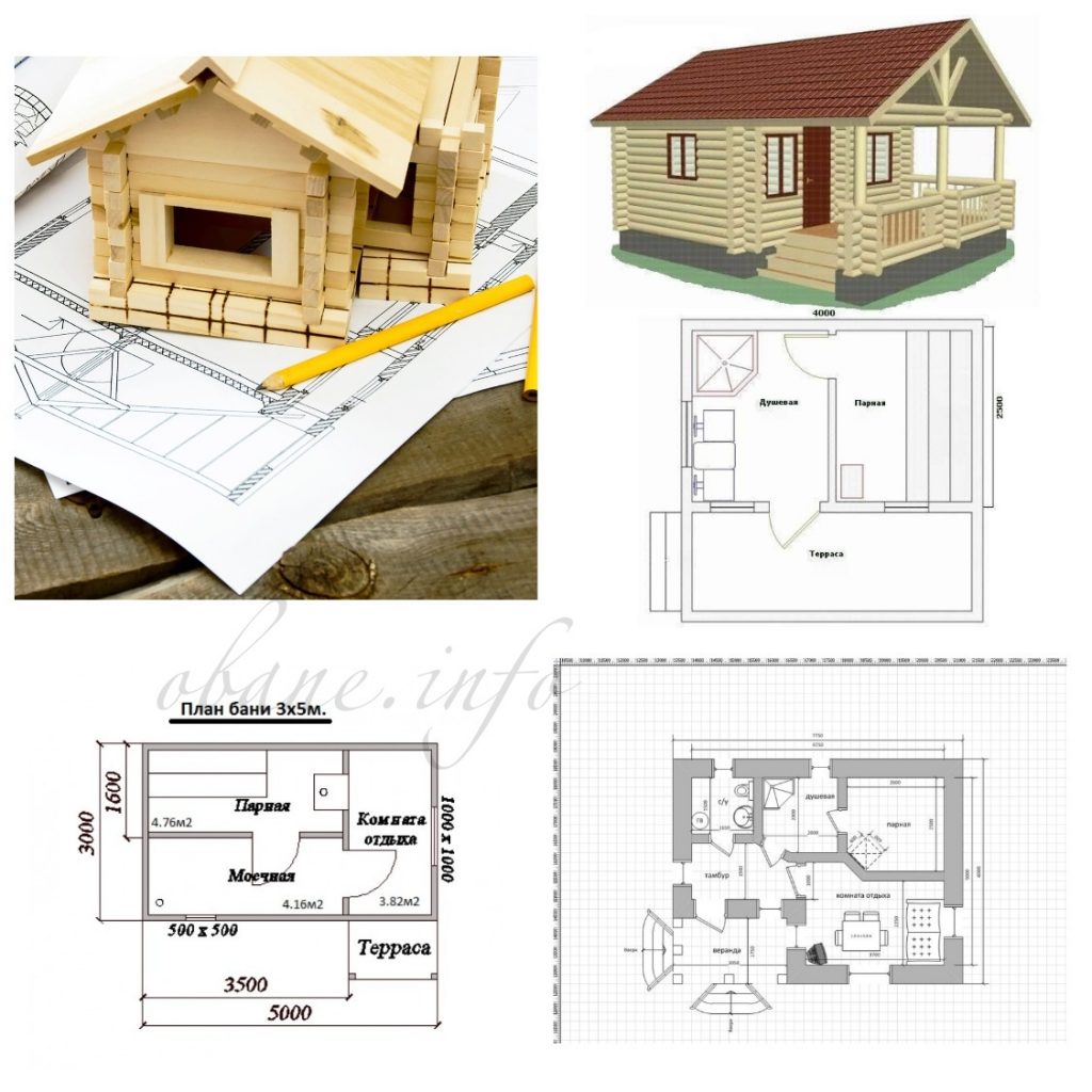 - На втором этапе определяется архитектурная форма, согласовывается вид строительного материала для возведения коробки и обустройства кровли. В это время определяются основные линейные размеры бани и общая полезная площадь. Следует не забывать, что для полноценного принятия процедур семьей из шести человек, общая полезная площадь не может быть менее 12 кв. м.;