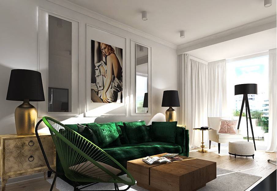 Жилые помещения, например, гостиная, спальня или даже кухня, окрашенные в зеленый цвет, станут не только более уютными, но и расслабляющими. Ничто не будет более расслабляюще, чем общение с природой. Зеленый цвет может быть введен в интерьеры как в форме оттенков 2021 года, например, шалфея или зеленого горошка.