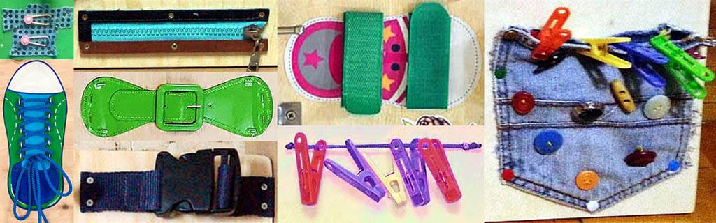 Элементы бизиборда для развития навыков обращения с одеждой и обувью