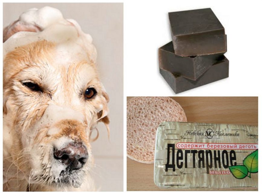 - “Соленое” купание питомца. Для этого необходимо развести соль в теплой воде в пропорции одно ведро – пачка соли. В раствор помещают животное до уровня шеи и выдерживают не более пяти минут. В это время нужно постоянно споласкивать шерсть и после тщательно промыть проточной водой. Вместо соли можно использовать также отвар полыни или эвкалипта. Также можно купить дегтярное мыло и использовать его как средство от блох. Это мыло обладает лечебным и заживляющим эффектом, потому хорошо применится против блох.