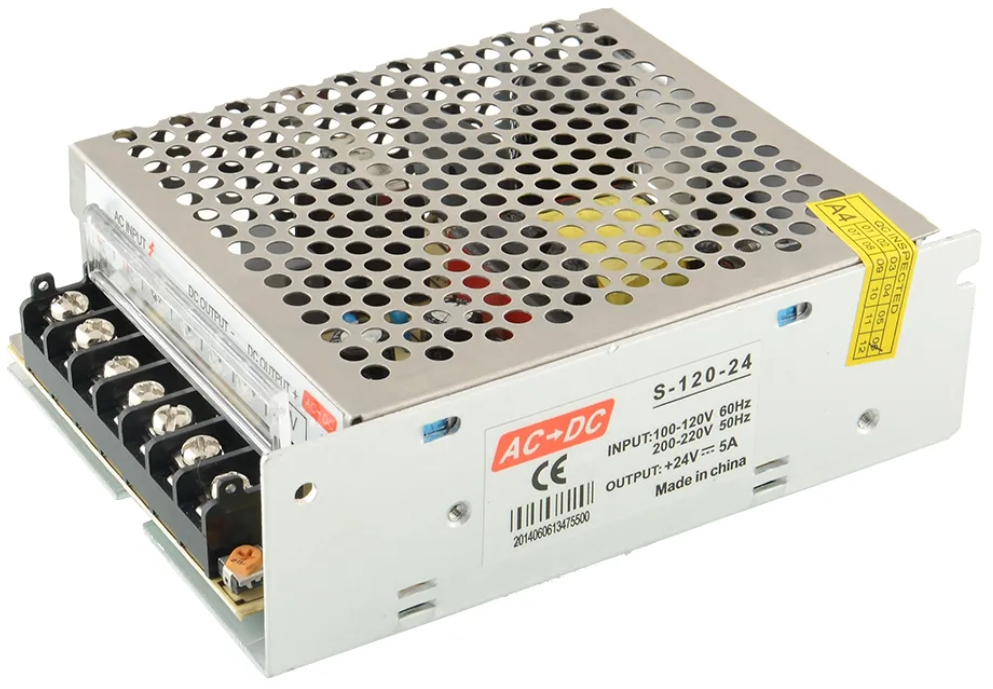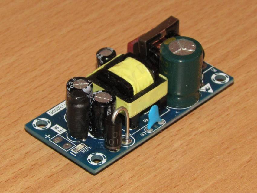Выполнен блок питания (БП) самостоятельно или приобретён серийный экземпляр, требования, предъявляемые к нему неизменные, а именно: высокий коэффициент полезного действия (КПД), малый размер, высокая стабильность выходного сигнала, отсутствие электропомех, а также высокая надёжность.