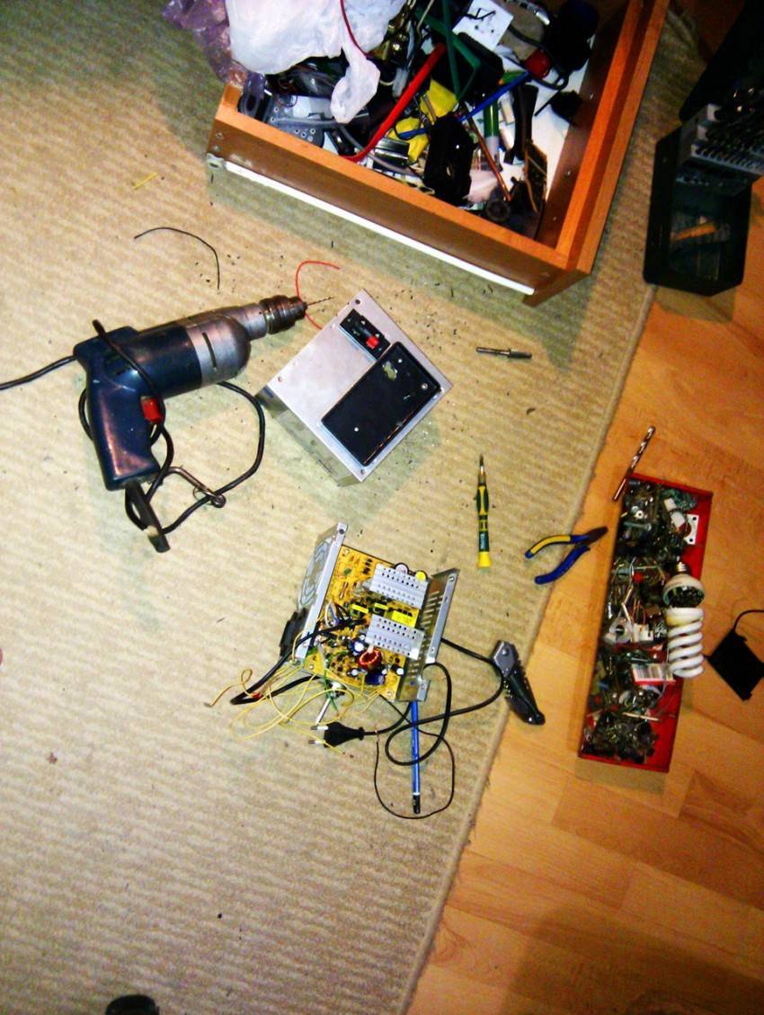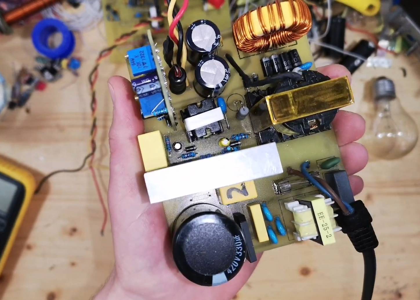 Да, в плане защиты, из-за отстутствия варистора, я выбрал вариант со стабилитронами, т.к. их всё равно валяется куча и мне чёт кажется, что хрен я их всех заюзаю когда-нибудь. Надо, в общем, тратить! Поэтому варистора на фото выше вы не видите, зато присутствует родное ферритовое кольцо на проводах и два небольших фильтрующих кондёра, подключенных между силовыми проводами и “землёй”. Корпус устройства, естественно, заземлён, и в случае, если фазу пробьёт на корпус – моментально сгорит предохранитель, то есть можно быть уверенным, что от корпуса вас не шандарахнет. Естественно, крайне рекомендовано наличие в щитке работающего УЗО, а не простых автоматических пакетников, т.к. именно УЗО защищает человека от смертельных ударов током.