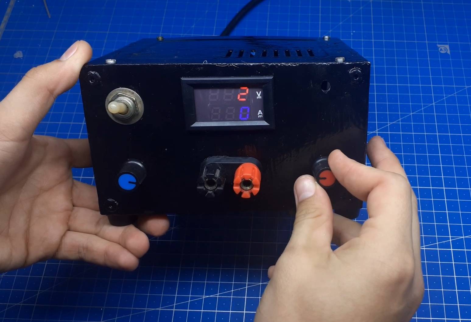 Все части ручного блока питания располагаются в корпусе и соединяются по необходимости, последующий монтаж электронной схемы осуществляется, затем цифровой дисплей подсоединяется к передней панели. Когда всё готово, вам остается только закрыть верхнюю крышку и затем произвести распайку всех выходных разъемов и проводов. После этого вы можете отложить паяльник и наслаждаться работой своего нового блока питания.