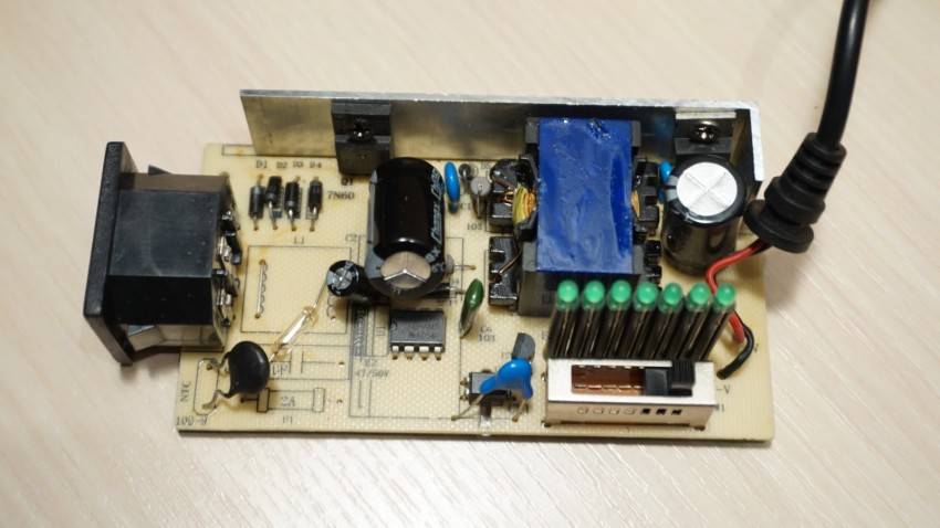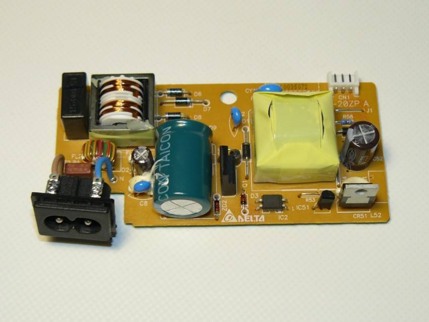 Первым делом прозванивается сетевой шнур. И только потом, если он в порядке, разбирают электрический адаптер. Диагностику начинают с осмотра платы. Вышедшие из строя радиодетали зачастую распознаются по внешнему виду. Конденсаторы — вздуты либо вскрыты в верхней части, возможно вытекание жидкости из корпуса. Перегоревшие резисторы и диоды могут почернеть.