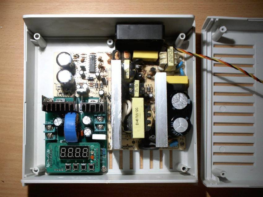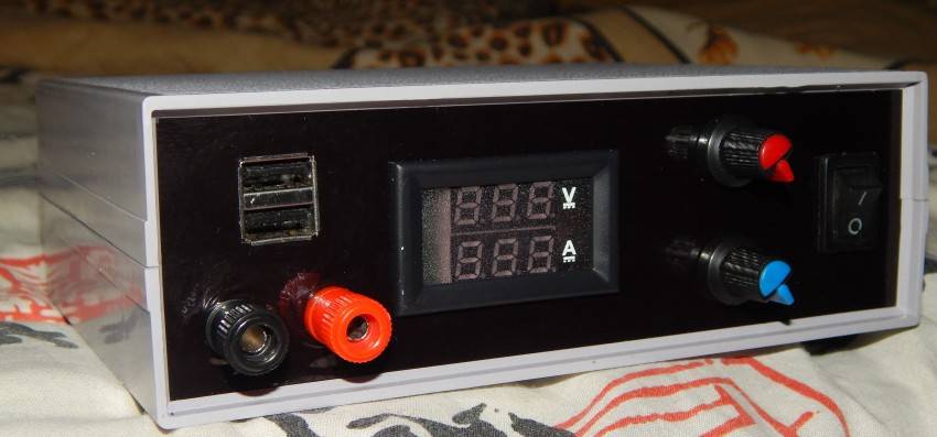 Блок питания для электроники собирают мастера часто из пластиковых корпусов, которые легко самостоятельно создать. Для этого в лицевой панели делают отверстия для индикатора и регулировочных резисторов, а также гнездо для выходного напряжения. В задней панели размещены гнездо входного напряжения и выключатель питания. Корпуса скрепляются клеем на основе цианоакрилата, который надежно держит пластиковые панели вместе. Чтобы избежать перегрева, мастера сверлят в корпусе вентиляционные отверстия, которых должно быть как можно больше.