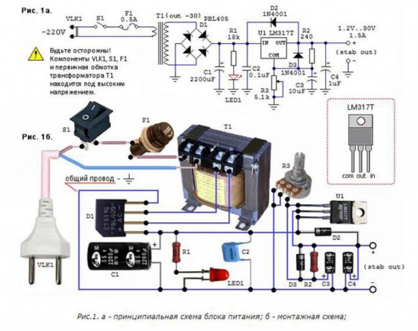 Важно! Если монтировать лабораторный БП, стоит остановить внимание именно на аналогичной схеме. Источник питания должен поддерживать любые форматы выдаваемого постоянного напряжения