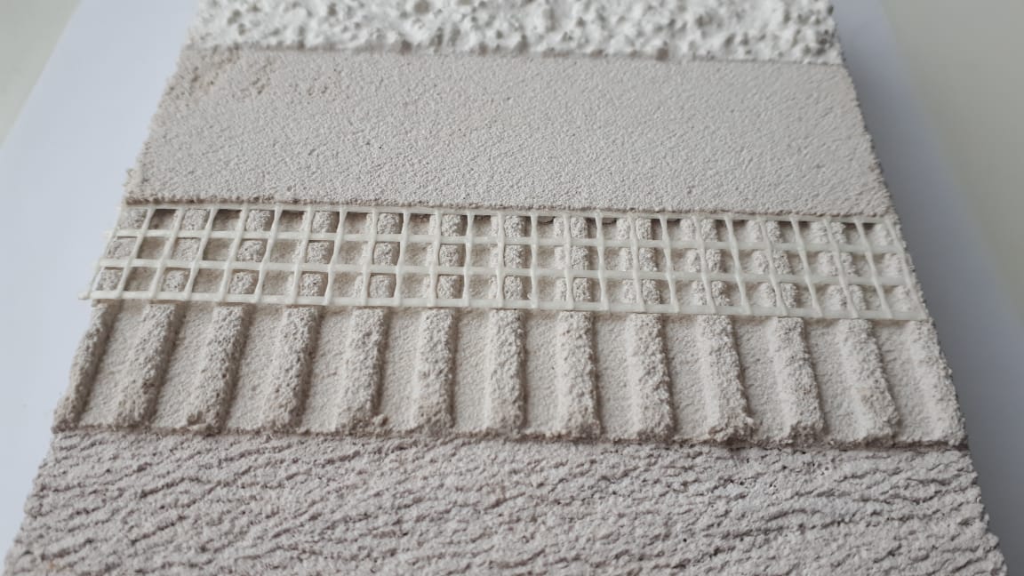 Приклеивание керамической плитки на фасадах зданий, выполненных из ячеистого бетона, монтируется по схеме: первый слой (толстостенная штукатурка) выравнивает локальные отклонения и создаёт более прочную поверхность для монтажа базового слоя. Второй слой формирует прочное основание для приклеивания керамической плитки. Тем самым слой из толстостенной штукатурки выполняет роль “выравнивающего” покрытия, не только отклонений от плоскости, но и создаёт более плавный переход от менее прочного блока к более прочному базовому слою. Что положительно сказывается на работу системы. Облицовка из плиточных материалов имеет линейные расширения от перепада температур, по этому необходимо использовать как эластичный клей так и хорошее основание, что с успехом решается в данном варианте.