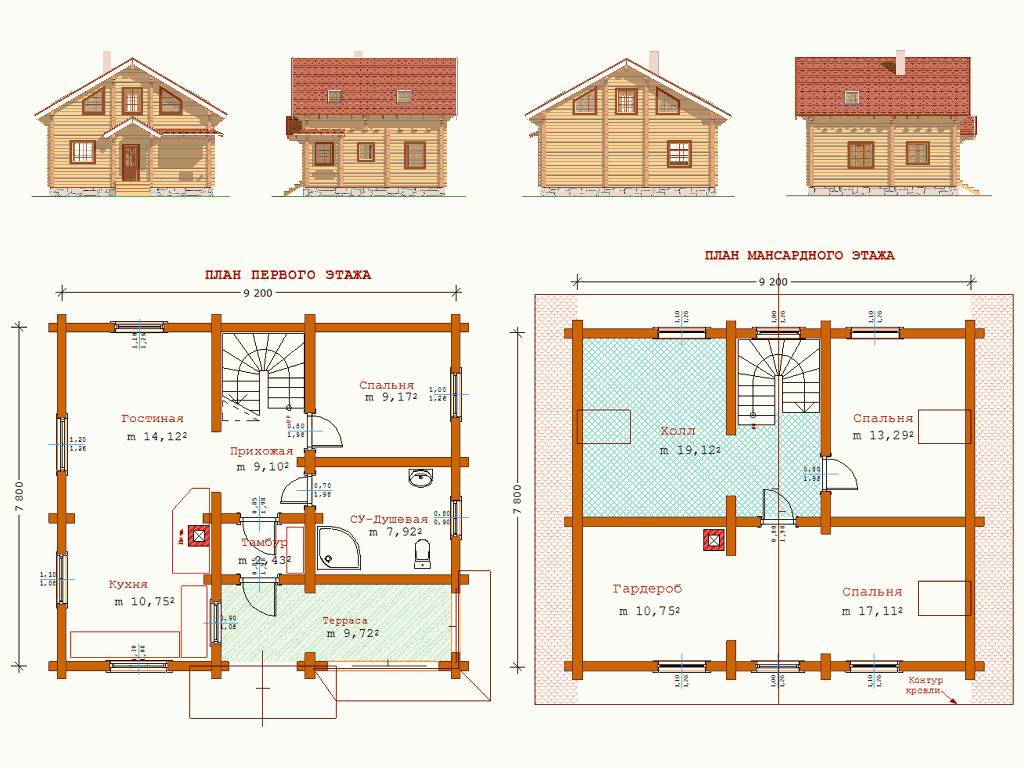 Планировка всех этажей двухэтажного дома из сруба