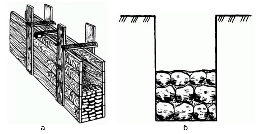 Виды бутовой кладки а — в опалубке; б — враспорФото из открытых источников