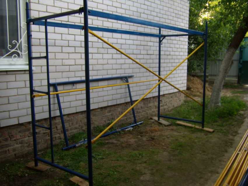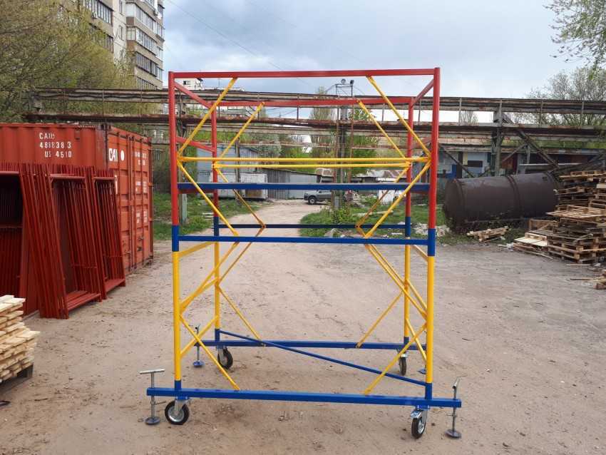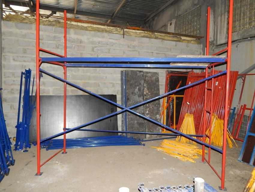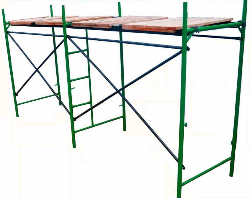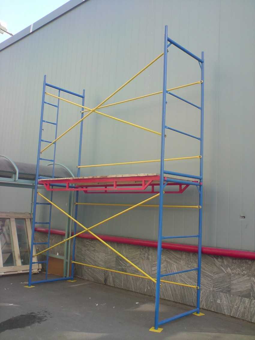 4. Рамные. Их преимущество в легкости, простоте сборки. Собрать их можно очень высокими, до 50 метров. Выдержать они смогут около 200 кг на каждый метр поверхности основания. В стройке их используют чаще всего, потому как сделать их своими руками несложно.