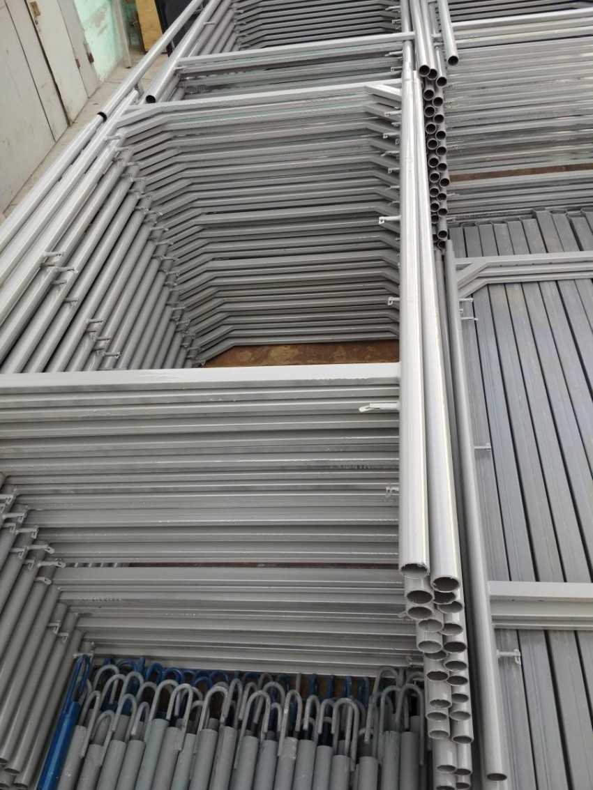 Доски для настила можно уложить двумя способами – по длине секции и поперек. Для поперечного настила по бокам конструкции прикручивают болтами горизонтальные трубы на уровне верхних распорок. Для продольного настила берут доски не менее 2 м длиной, сбивают по ширине секции, укрепляют снизу поперечными брусками от прогиба.