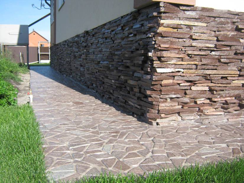 - Каменная отмостка выглядит достаточно привлекательно, но обходится очень дорого из-за применения природного материала. Квадратный метр в этом случае стоит от 2 500 рублей.