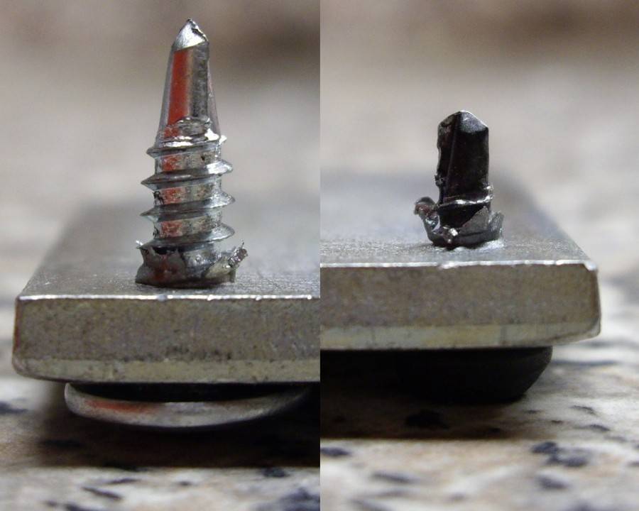 - Если это саморезы со сверлом на конце, то оно не должно иметь заусенцев на краях, острый конец самореза должен быть без заусенцев и не быть обломанным.