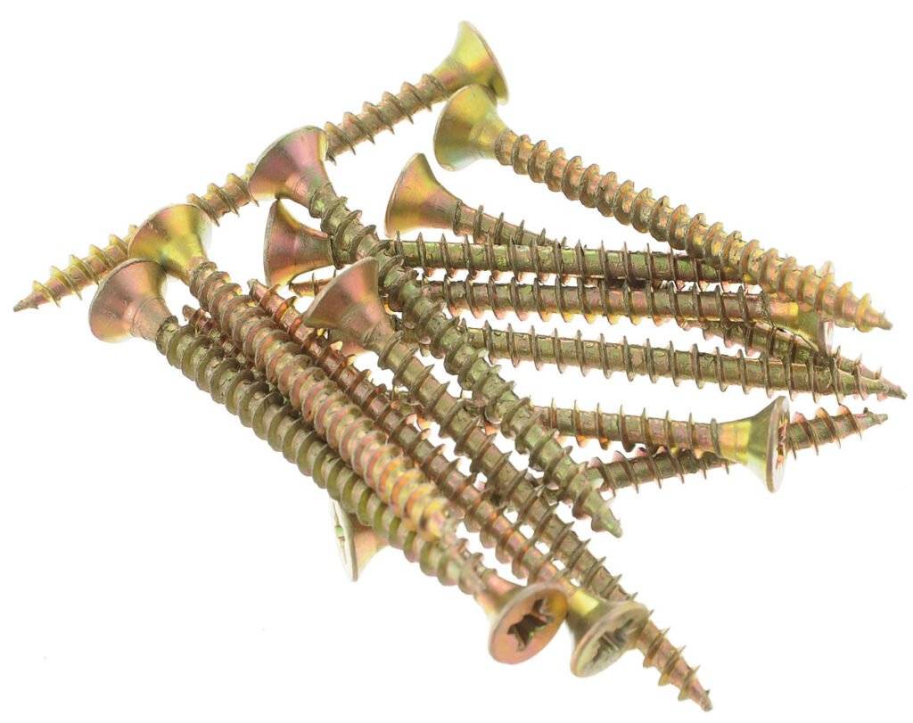 Преимущество этого материала в том, что он стоит гораздо дешевле белых или черных саморезов и идеально подходит для грубой работы или для изделий/конструкций с небольшой нагрузкой и для использования в сухих помещениях.