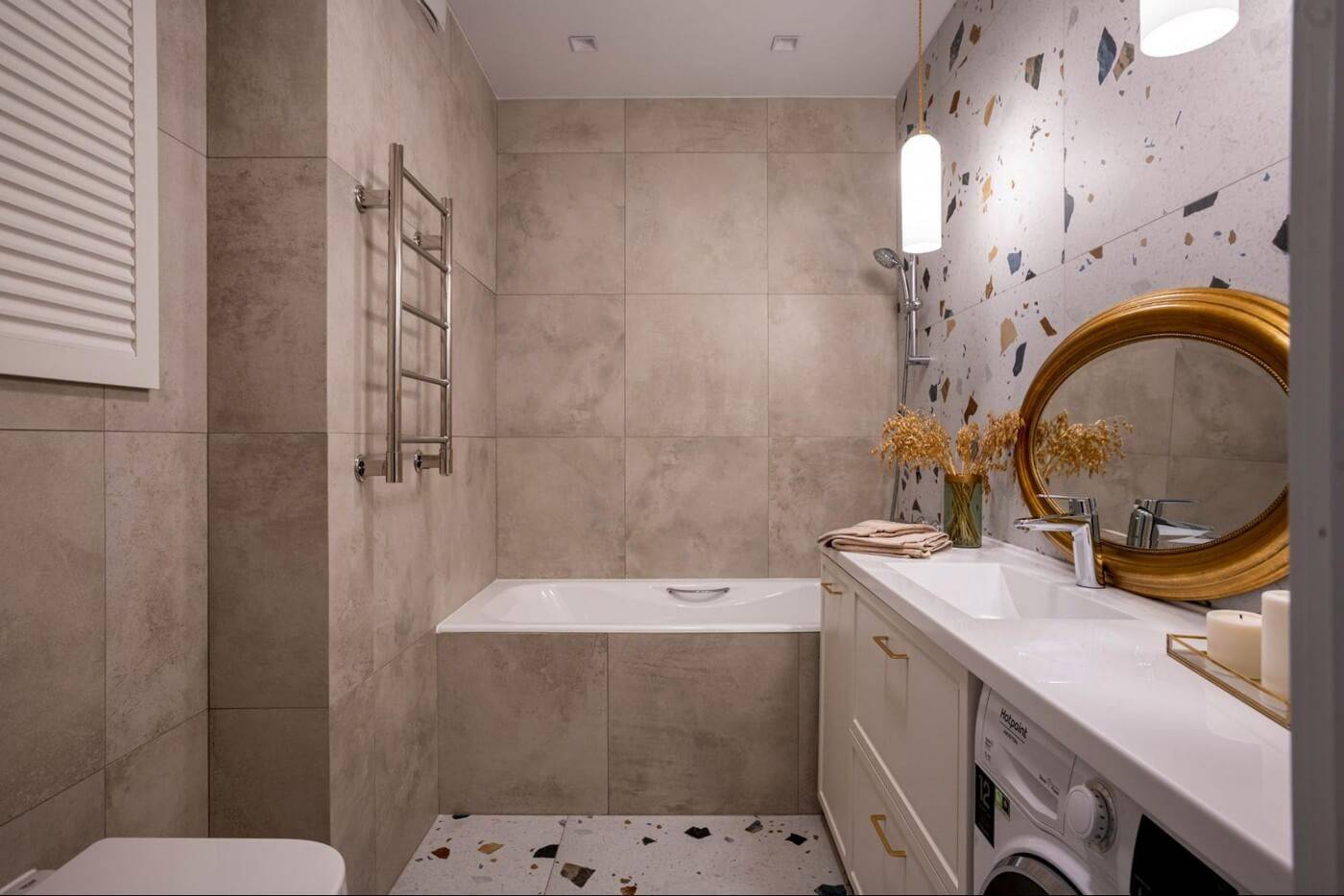 В квартирах напольная плитка, как правило, встречается в тех помещениях, где возможны повышенная влажность и соприкосновение с водой — в кухне, санузле, прихожей, на балконе. Но плитку можно уложить и в других комнатах, например, в спальне и гостиной.
