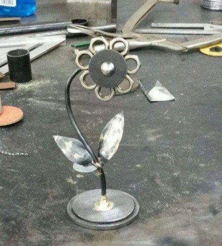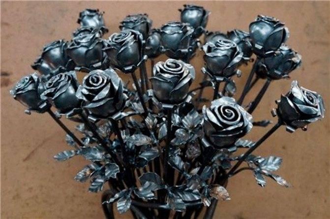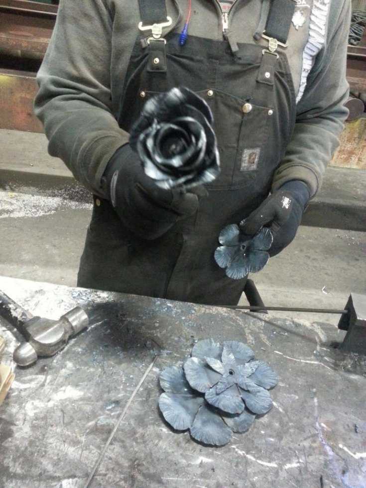 Бутон приваривают к розе. Покрывают краской. Поделка из металла готова.