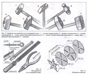 Выше были рассмотрены наиболее распространенные варианты холодной ковки, однако она может быть выполнена и несколько иным образом – в виде чеканки. Чтобы воспользоваться этим методом, нет необходимости приобретать специальные сложные инструменты. В основе этой техники лежит работа с заготовкой, на которую наносят заранее составленный узор путем выдавливания металла. После того, когда будет подготовлен эскиз узора или изображения, его необходимо вырезать. Затем нужно позаботиться о наличии места для загиба материала.