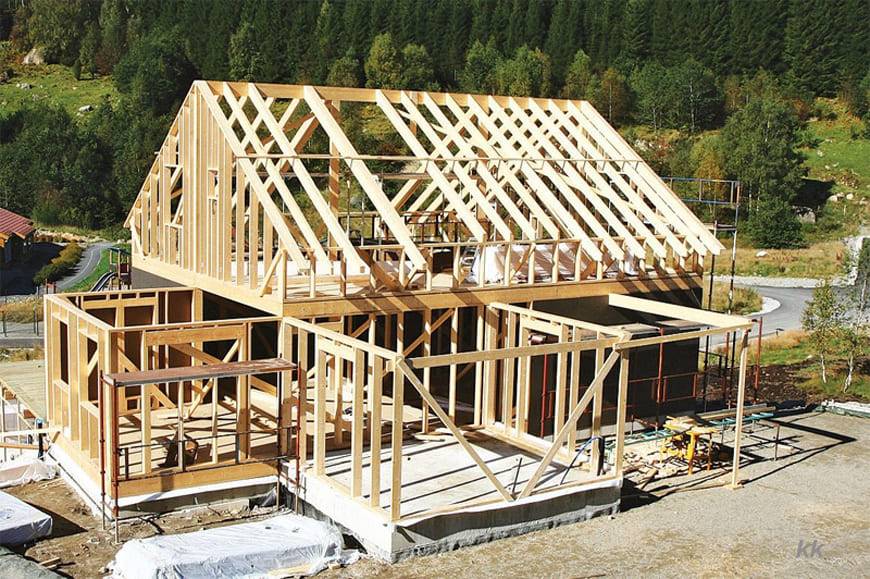 Каркасно-щитовой дом — собирается из готовых щитов. Сначала соединяют их, потом делают перегородки между комнатами. Завершающий этап – постройка крыши.
