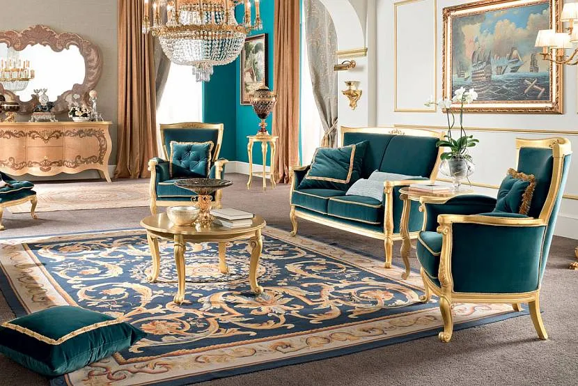 Нестареющая классика . Помпезность, некоторая торжественность и холодность, напоминающие декор дворцовых залов, присущи классическому интерьеру в бирюзовых красках.