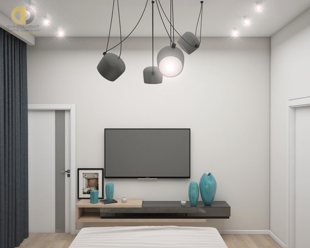 Если бирюзовый интерьер спальни – не ваша тема, а добавить яркости в дизайн комнаты очень хочется, стоит обратить внимание на бирюзовые свечи, вазы и другие мелкие аксессуары. Ими можно украсить полки в изголовье кровати, комод, прикроватные столики или стеллаж в ТВ-зоне