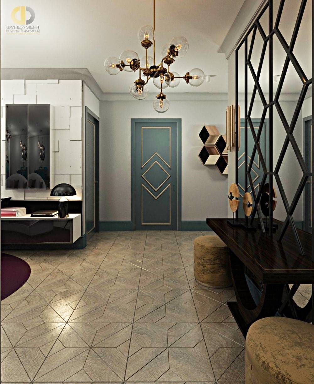 Использование геометрических узоров, орнаментов и вензелей на поверхностях мебели и стен в этом стиле будут выглядеть достаточно уместно. Подчеркнут классику золото или бронза, использованные для дверных ручек, посуды и декоративных предметов.