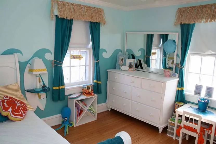 Морские оттенки широко используются для оформления комнат для детей разных возрастов.