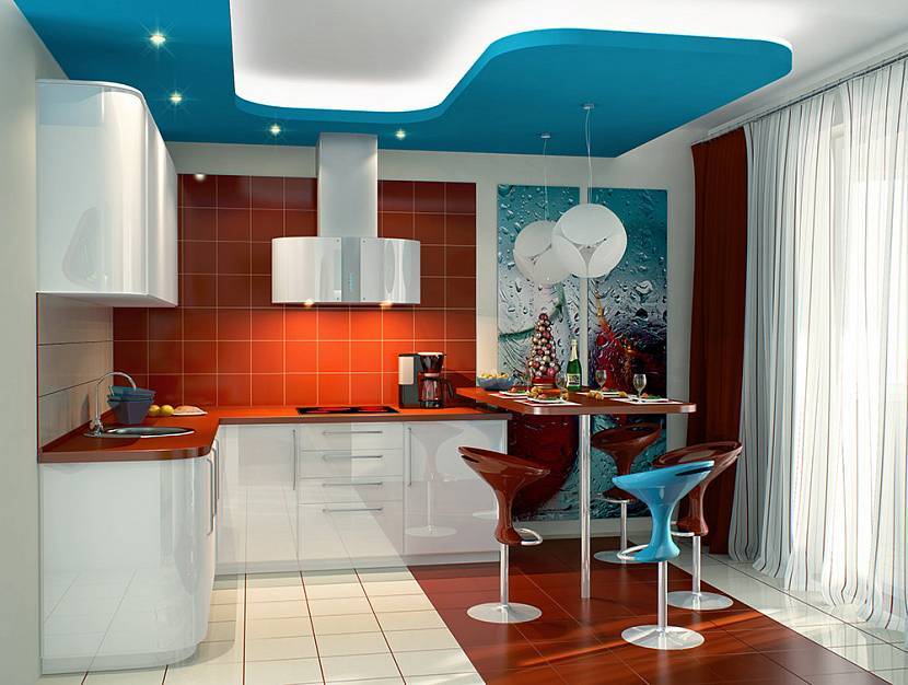 Пространство визуально увеличивает белый потолок со встроенным светодиодным освещением. Источник vivbo.ru