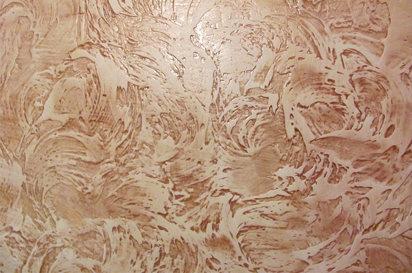 - Для новичков существует несколько доступных приемов, позволяющих получить неплохой декоративный эффект. Это могут быть волна, прямые или косые линии «дождика», различные круги или скрещенные линии. Простым и интересным вариантом является горизонтальный рельеф. Движения при работе должны быть мягкими и уверенными без излишних усилий. Не стоит очень долго оформлять определенный участок: можно потерять желаемый эффект поверхности.