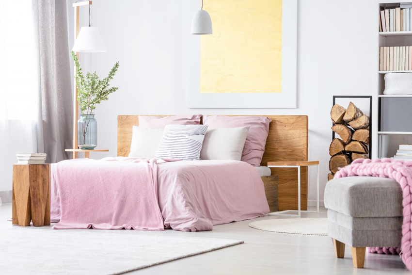 Кровати из натурального дерева выглядят в интерьере прекрасно. Красота природной текстуры позволяет гармонично вписать деревянные модели практически в любую обстановку. Самые твердые породы, не склонные к возникновению царапин и стойкие к повреждениям: бук, ясень, дуб.