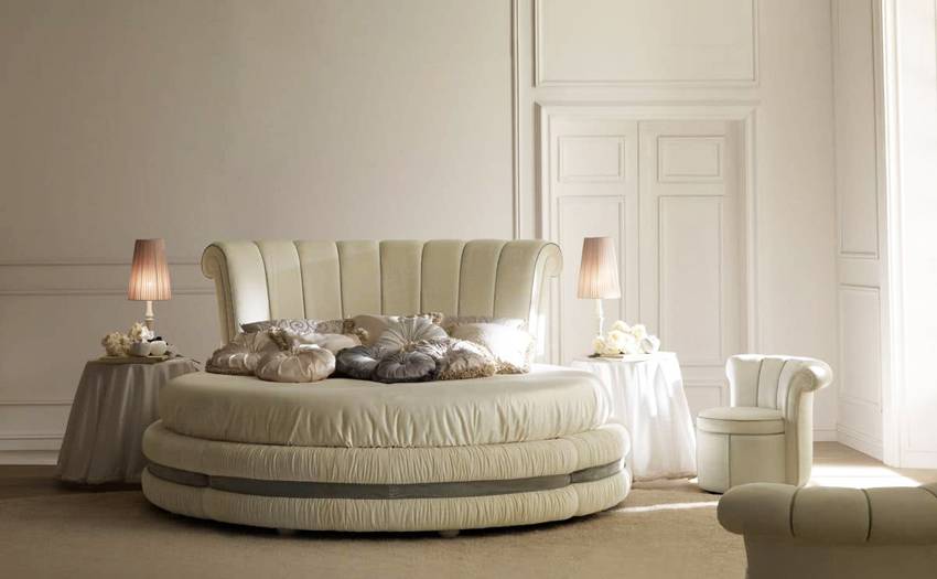Круглая кровать является нестандартным решением для спальни