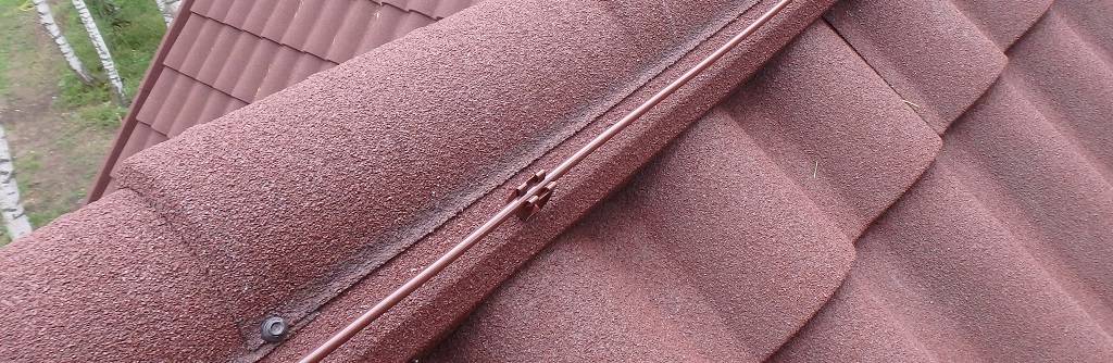 При монтаже сетки её крепят вдоль конька крыши с ответвлениями из токоотводов, имеющих надёжное заземление по всей площади кровли.