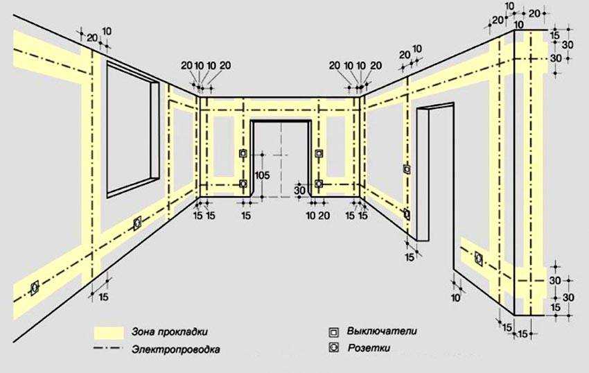 - Минимально расстояние от кабелей порталам, оконным и дверным проемам не должно быть менее 10–15 см.