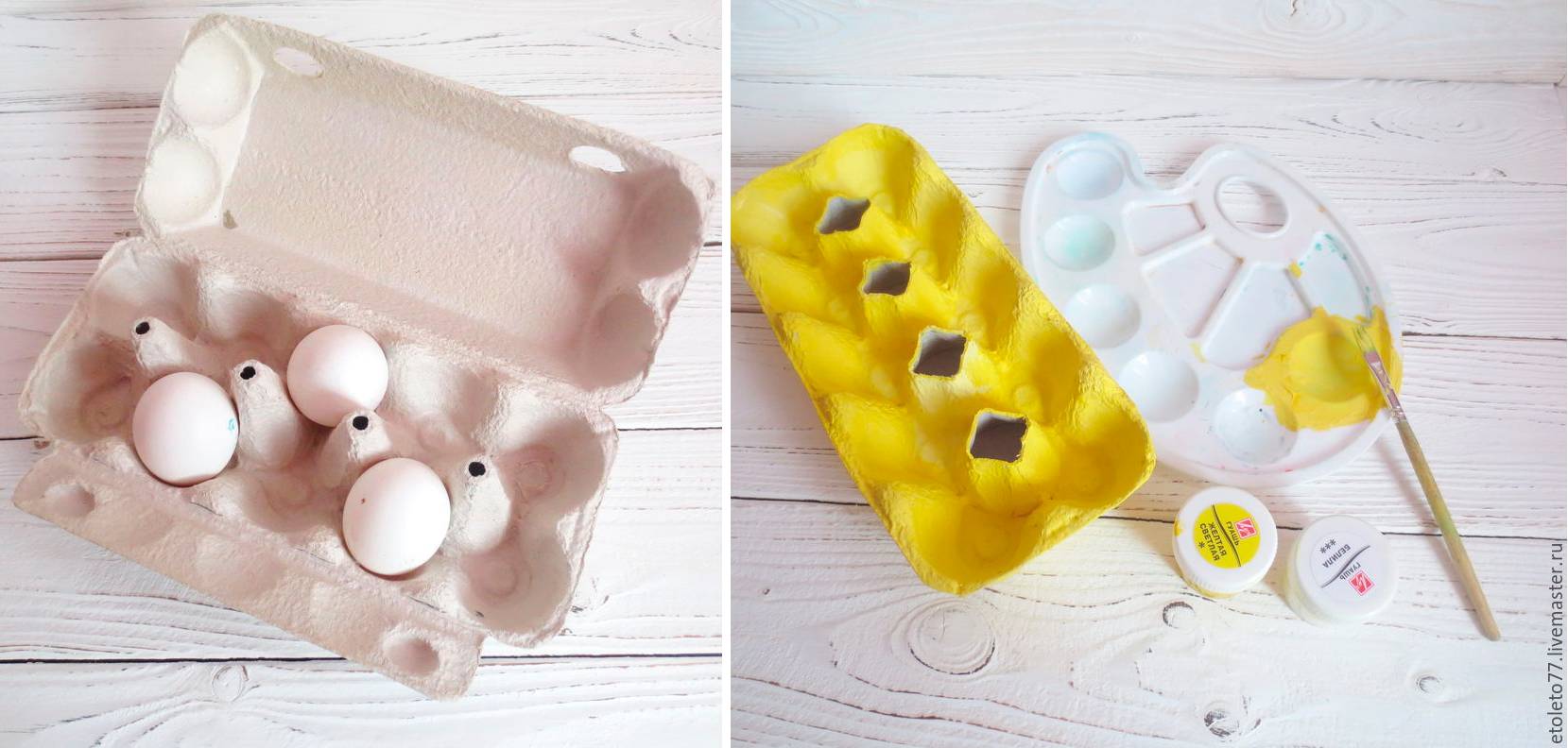 - Яйца — свежие или заготовки из пластика, дерева, пенопласта