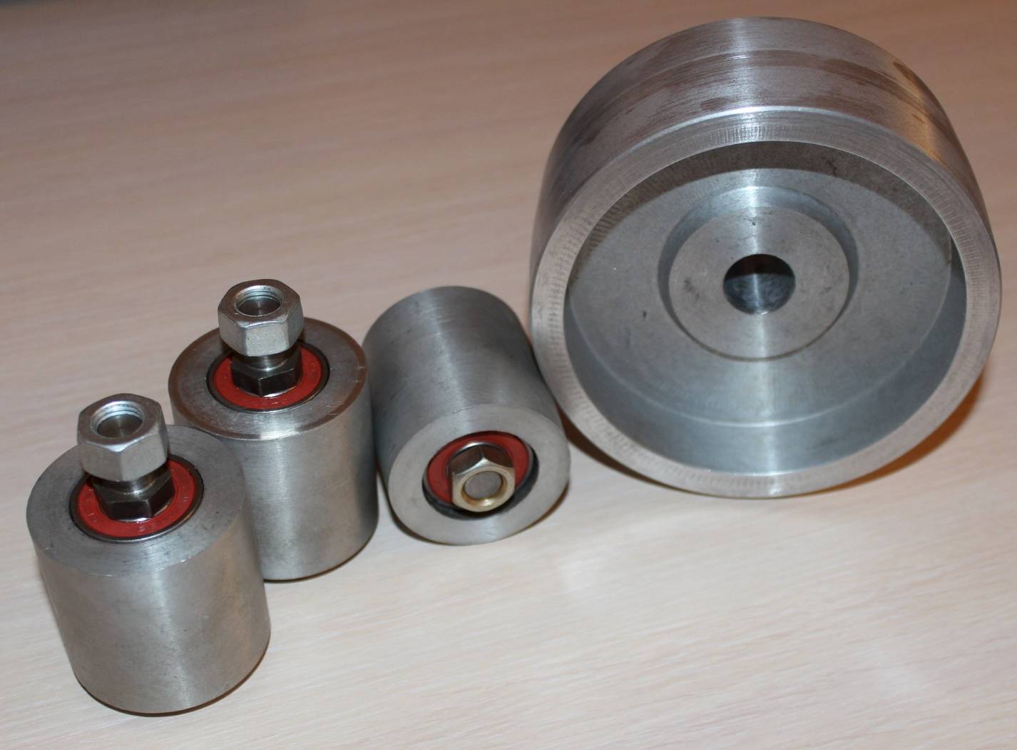 Таковым же методом собираем последующие два ведомых ролика. Но форму бочонка придаем лишь ролику натяжному.