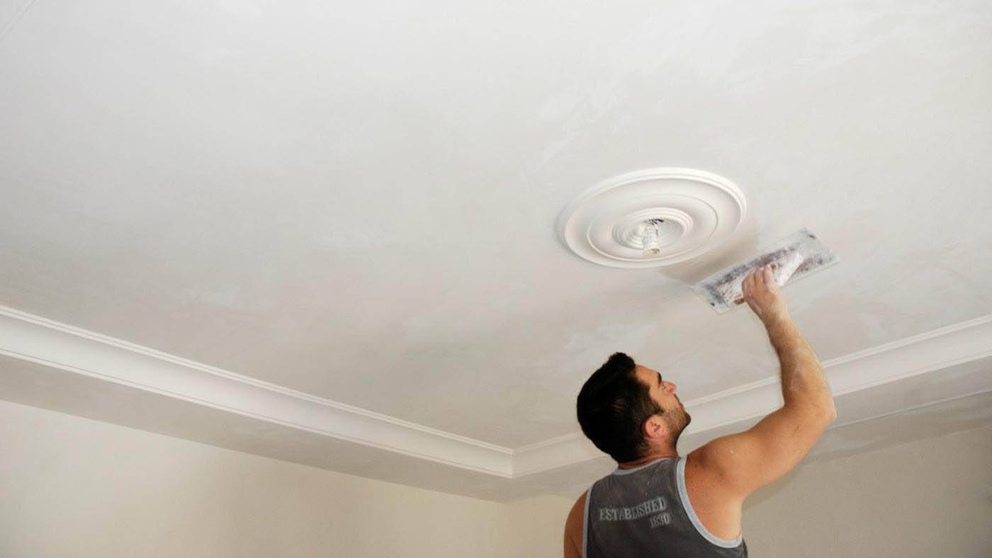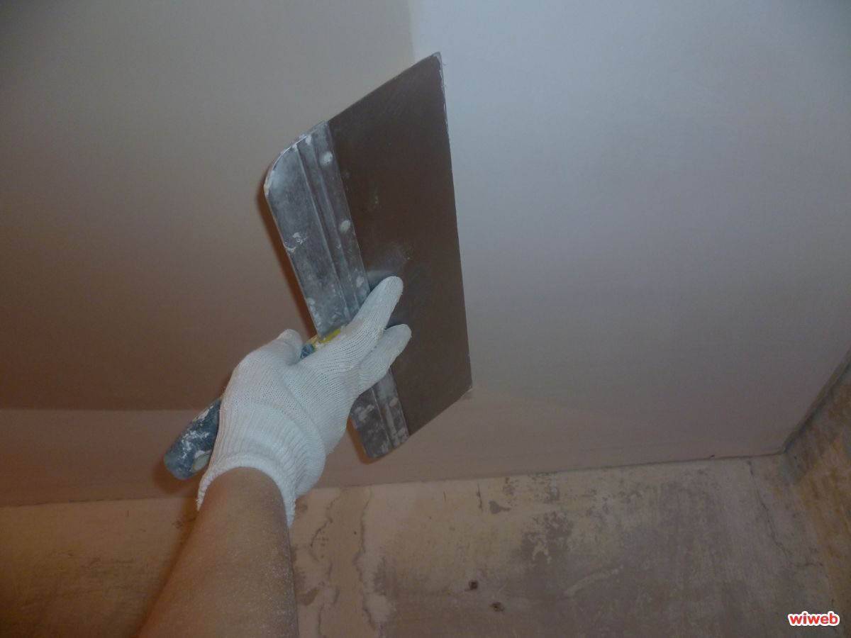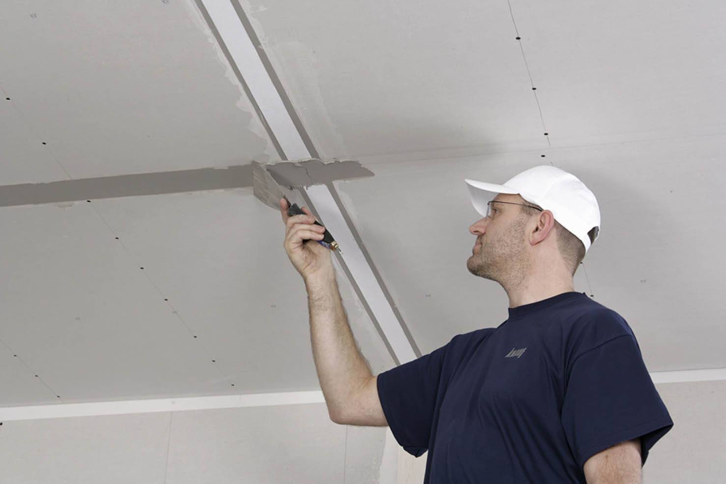 Важно помнить, что перед началом работ с электроприборами необходимо обесточить все помещение. Сняв все светильники, тщательно изолируем все оголенные окончания электропроводки; теперь удаляем все декоративные элементы, которыми был украшен потолок; если на покрытие были наклеены обои, снять их можно предварительно смочив теплой водой; следующим шагом станет удаление отделки в отдельных местах, для определения мест стыковки плит. Этот шаг необходим в тех случаях, когда места стыковки листов практически незаметны для глаз; также необходимо демонтировать сетку-серпянку, которая находится на швах покрытия