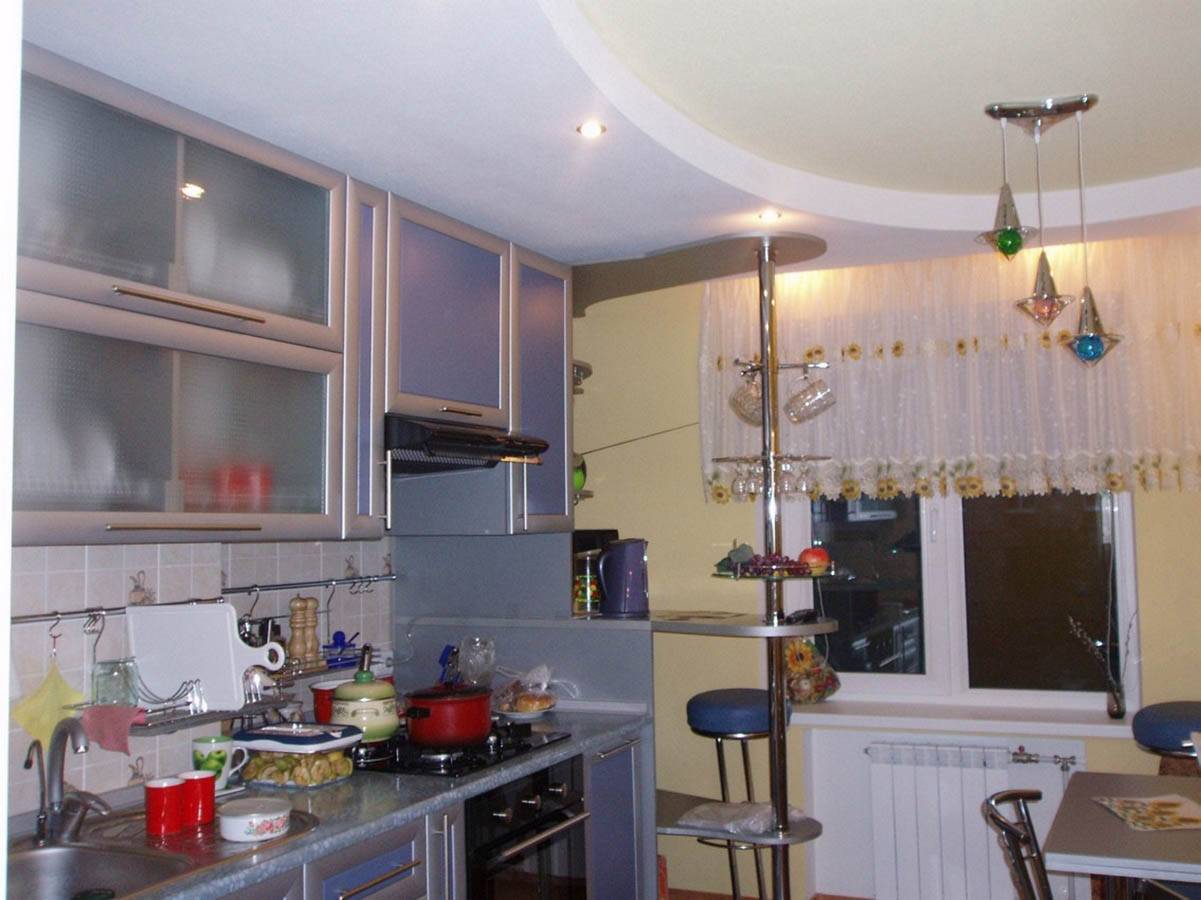 Финишная отделка подвесной конструкции может быть разной. Традиционно это окрашивание или оклейка обоями. Но нередко наносят декоративную штукатурку или жидкие обои. Если делают ремонт кухни, потолок из гипсокартона обычно окрашивают влагостойкими красками.