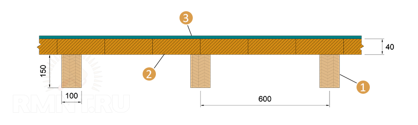 Первое что следует учитывать это вес материалов используемых для перекрытия. Например, если рассмотреть чердачное перекрытие с таким утеплителем как минеральная вата, то конструкция должна быть в состоянии выдержать не менее 50 кг на квадратный метр.