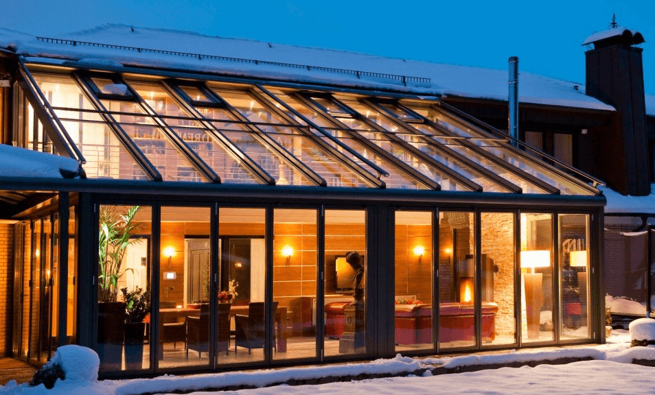 Остекление зимнего сада. В таких окнах сочетается несколько требований: вертикальное или наклонное стекло, а также раздвижная система. При наклоне стекло обязательно должно быть с большим запасом прочности (противоударное).