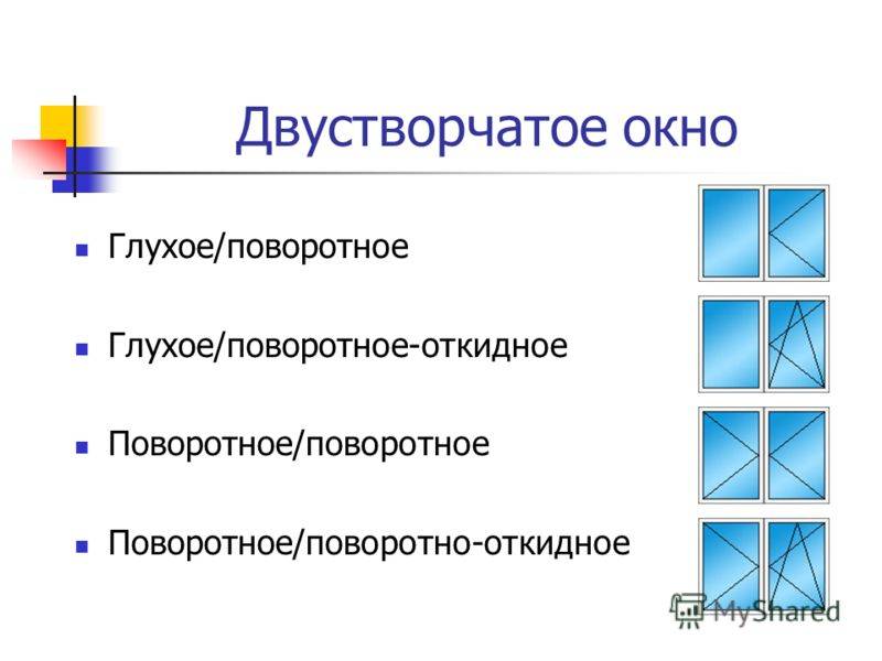 Данный вид оконных конструкций подразумевает наличие двух створок. Он является самым распространенным, так как помимо универсальности эксплуатационных характеристик обладает также относительно невысокой стоимостью.