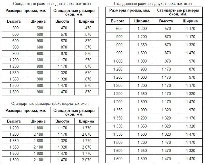 Таблица ниже познакомит Вас с типовыми размерами окон по ГОСТу.