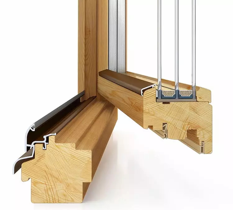 В таком окне алюминиевый каркас скрыт за деревянным профилем, изготовленным из ясеня, дуба или бука. Алюминий облегчает вес оконного блока, а натуральное дерево придает красоту и тепло. В России их популярность невелика, из-за высокой цены.